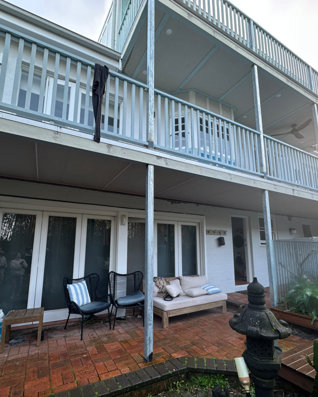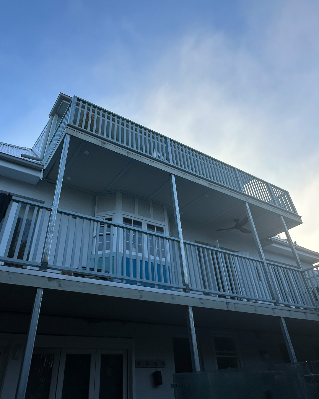 - Handrails- Posts- Balcony underneath- Beam faces